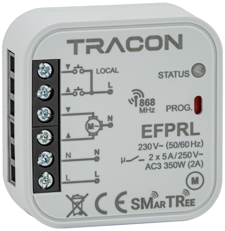 Műszaki adatok 230 V, 50 Hz, 2×5 A, 2 NO, 868.32 MHz