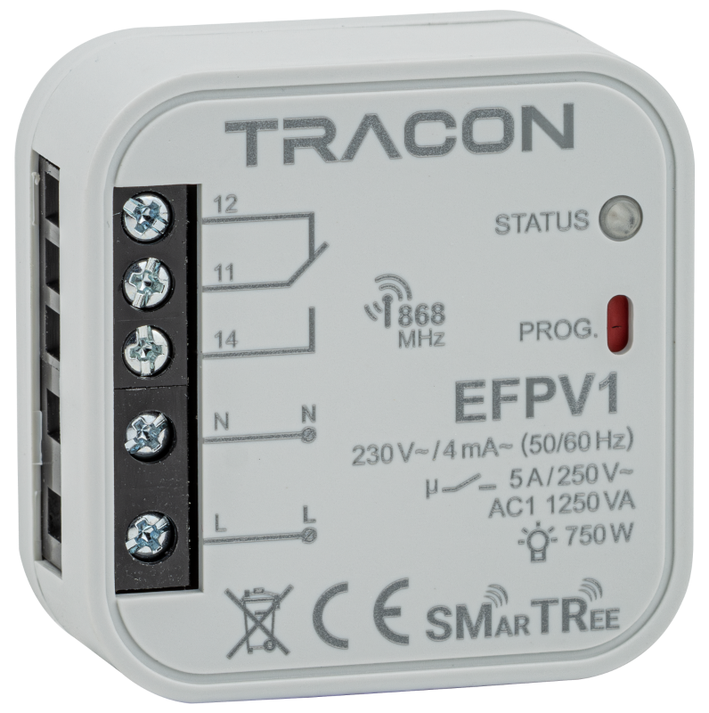 Műszaki adatok 230 V, 50 Hz, 1×5 A, 1NO/NC, 868.32 MHz