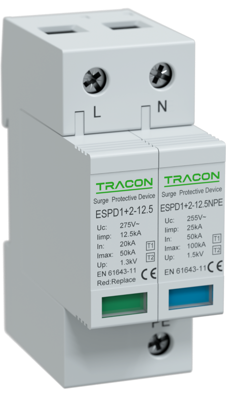Műszaki adatok Uc:275V; Iimp:12,5kA; In:20/40kA; Imax:50kA; Up:1,3kV; 1+1P