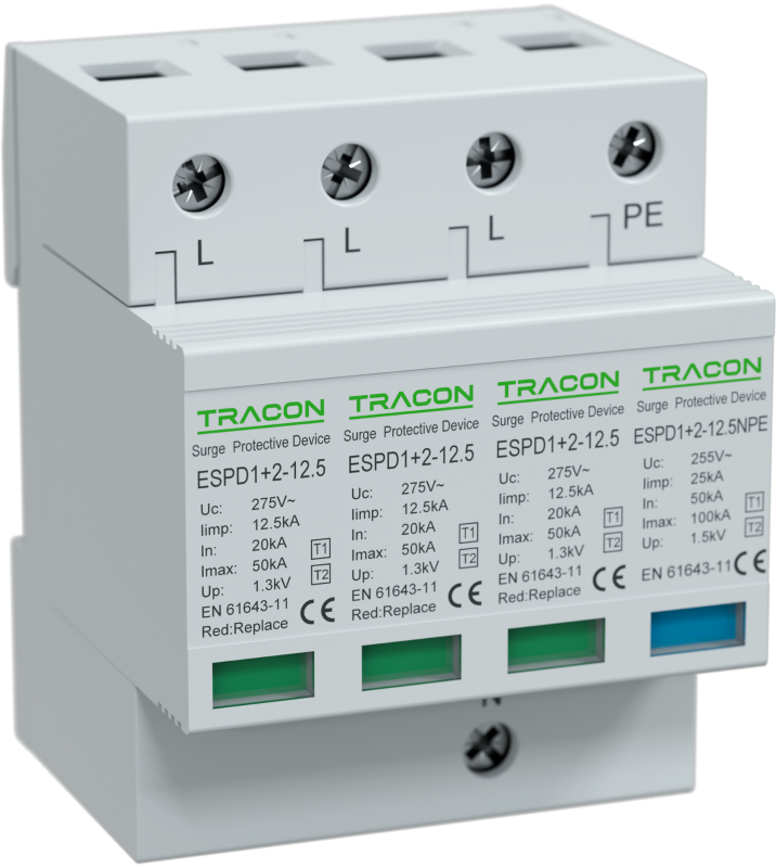 Műszaki adatok Uc:275V; Iimp:12,5kA; In:20/40kA; Imax:50kA; Up:1,3kV; 3+1P