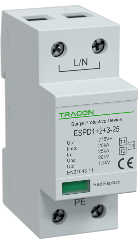 Műszaki adatok Uc:275V; Iimp:25kA; In:25kA; Uoc:20kV; Up:1,3kV; 1P