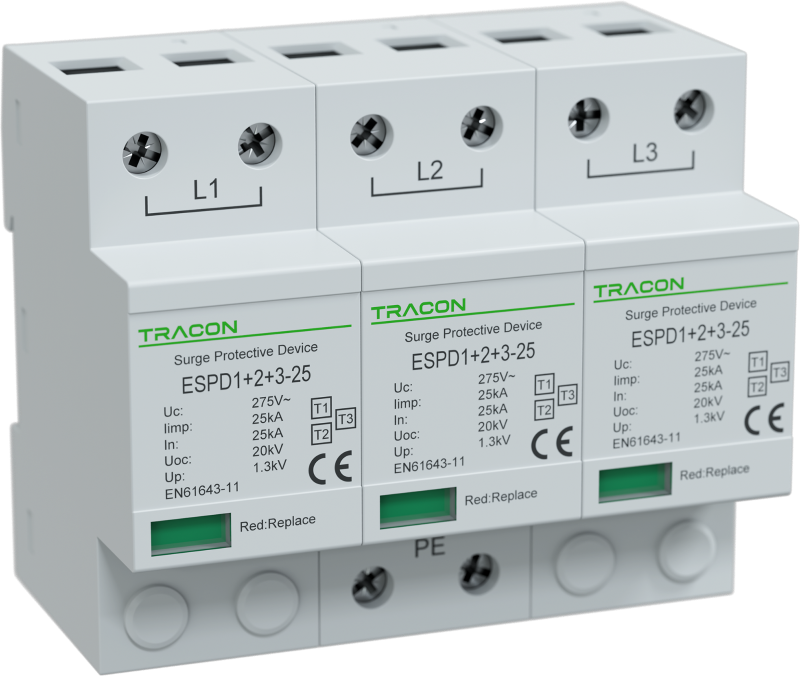 Műszaki adatok Uc:275V; Iimp:25kA; In:25kA; Uoc:20kV; Up:1,3kV; 3P