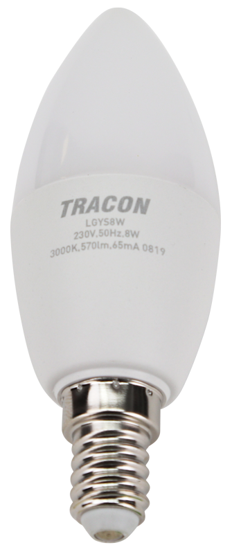 Műszaki adatok 230V,50Hz,8W,3000K,E14,710lm,180°,C37,CREE chip, EEI=F